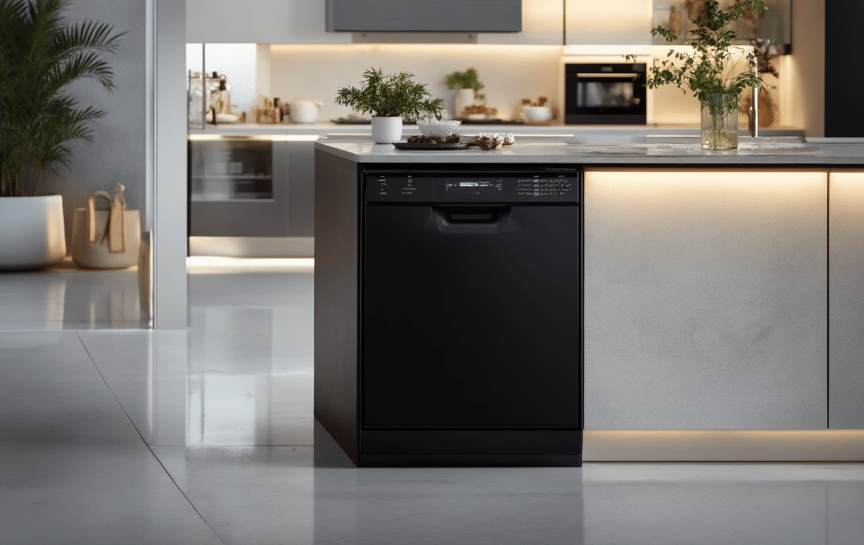 Ein energieeffizienter schwarzer Geschirrspüler spart Stromkosten und schont die Umwelt, indem er den Verbrauch niedrig hält.